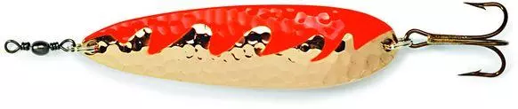 Hammer er tilbake igjen! Hammer er en meget effektivt sluk med en karakteristisk «hammerbanket» overflate som utsender helt spesielle reflekser i vannet. ABU Hammer i kobber rød og sølv blå, har vist seg å være meget effektiv til laksefiske i Numedalslågen og andre lakseelver