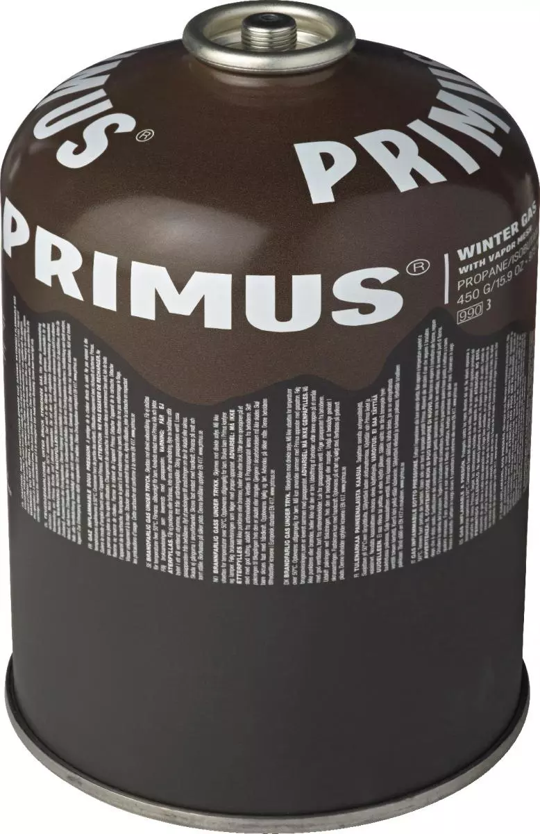 Primus Wintergas 450g er gass som er utviklet for å brukes i temperaturer mellom minus 22 og 10 grader. Gass soter ikke.